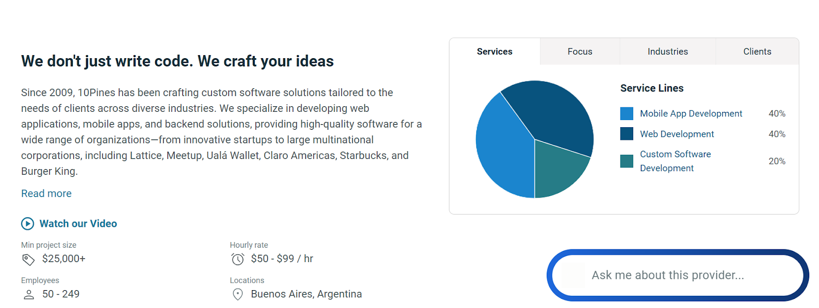 10Pines is known for operating as a Teal organization, emphasizing self-management, transparency, and trust. Their strong focus on Software Craftsmanship makes them an excellent partner for startups that want more than just code—they act as product partners.